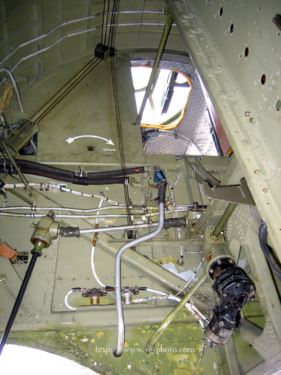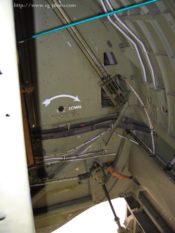 ground, looking up into the bomb-bay. The 2 circular arrows are the