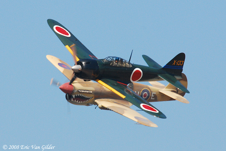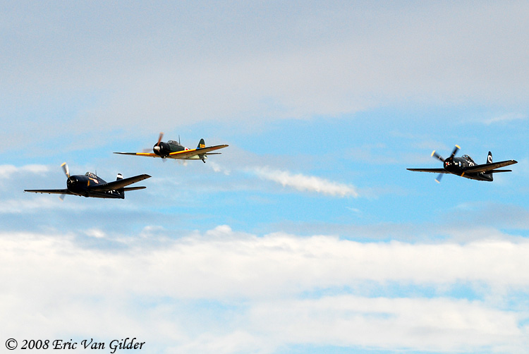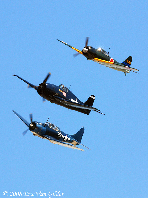 CAF SoCal Wing fighter formation with the F6F Hellcat, A6M Zero and the