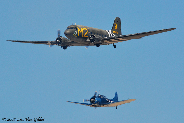 C-53 Skytrooper and an SBD Dauntless over Camarillo