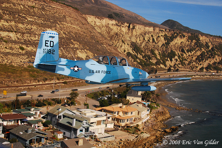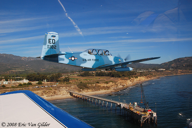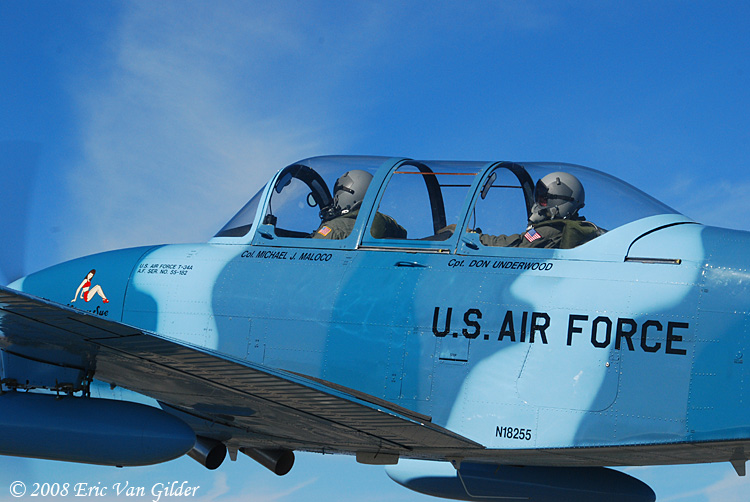 with Werner "Mule" Holderied in his back seat, flying his T-34 Mentor.
