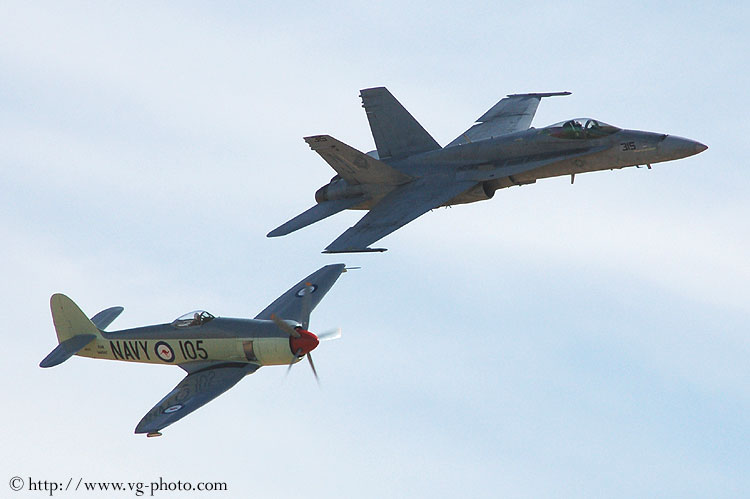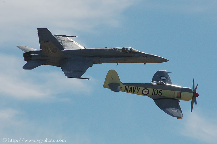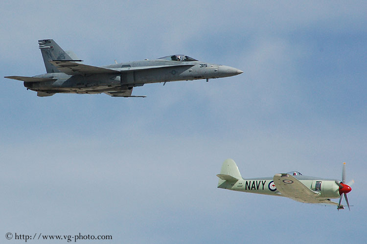 Heritage flight consists of an F-18 Hornet from the US Navy and a