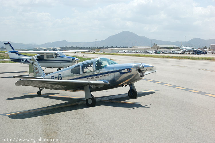warmup area. A classic general aviation airplane, a Temco Swift,