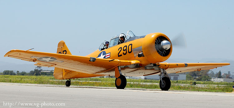 in a vintage WWII trainer, the SNJ-5. The SNJ-5 is the US Navy version